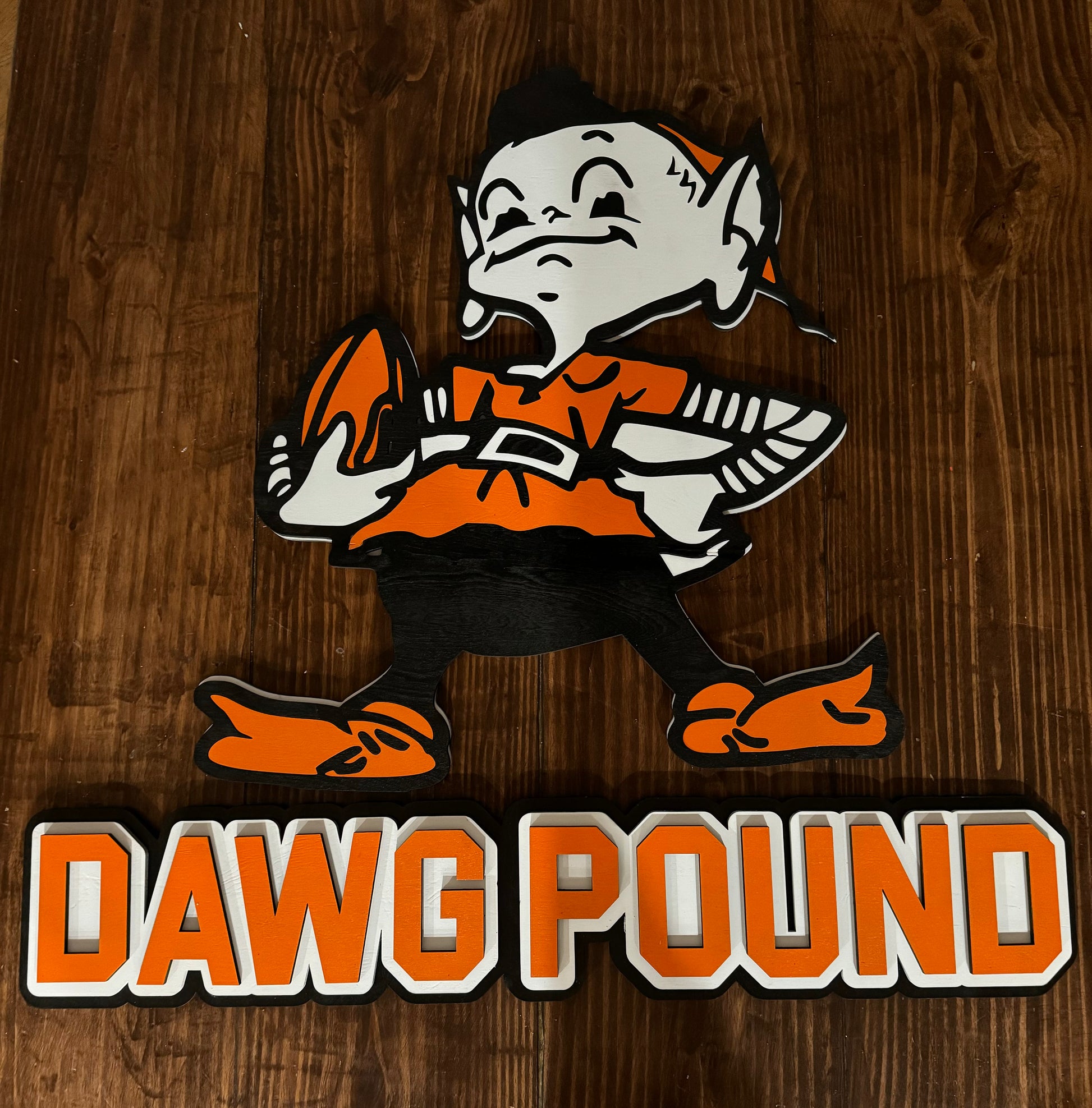This bundle includes two separate signs, making it ideal for a basement bar or sports room. Elfie sign is 2 layers and is Approximately 24 in tall The Dawg Pound sign is 3 layers and around 6 in tall