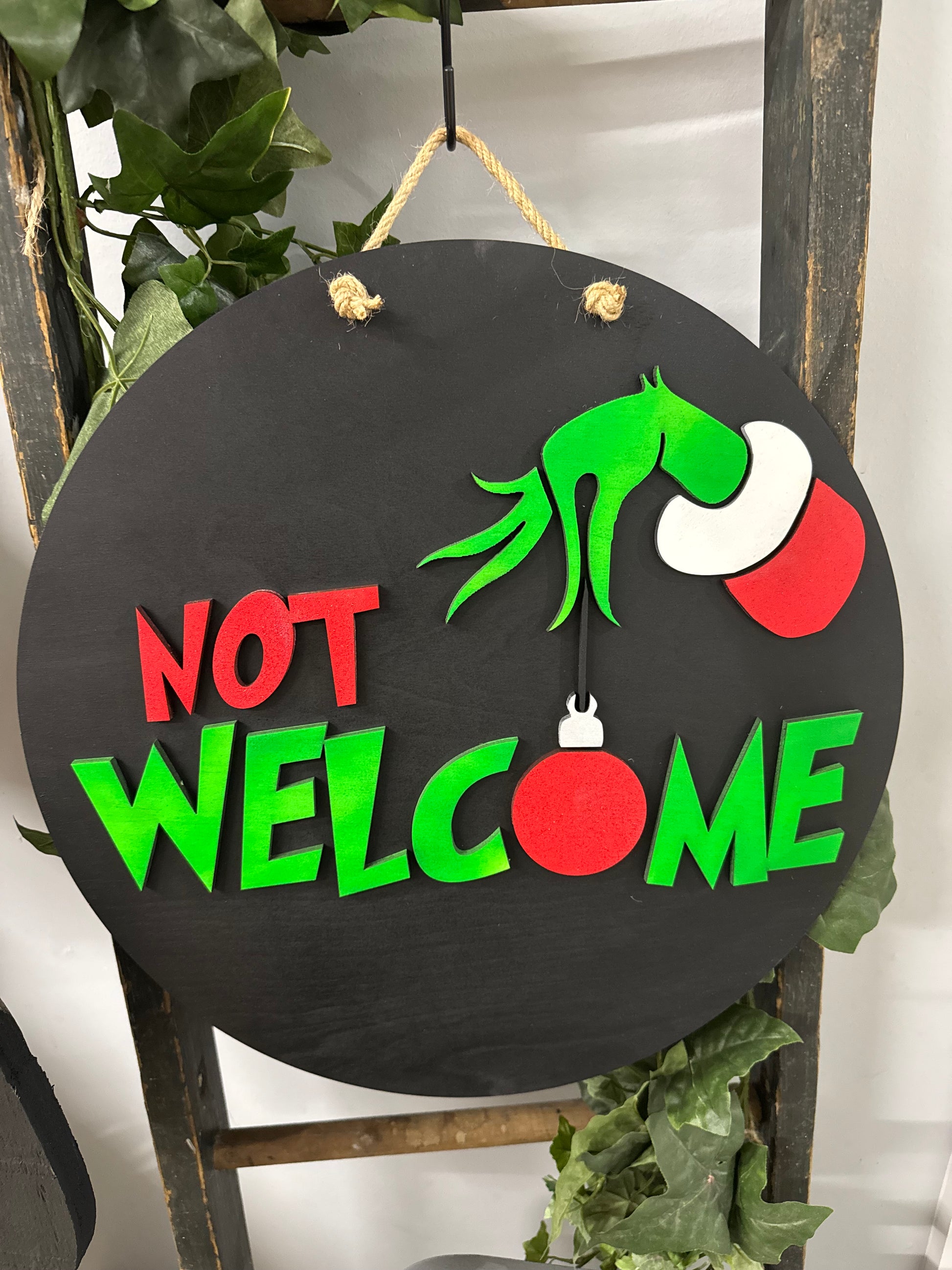 Grinch Not Welcome Round Sign