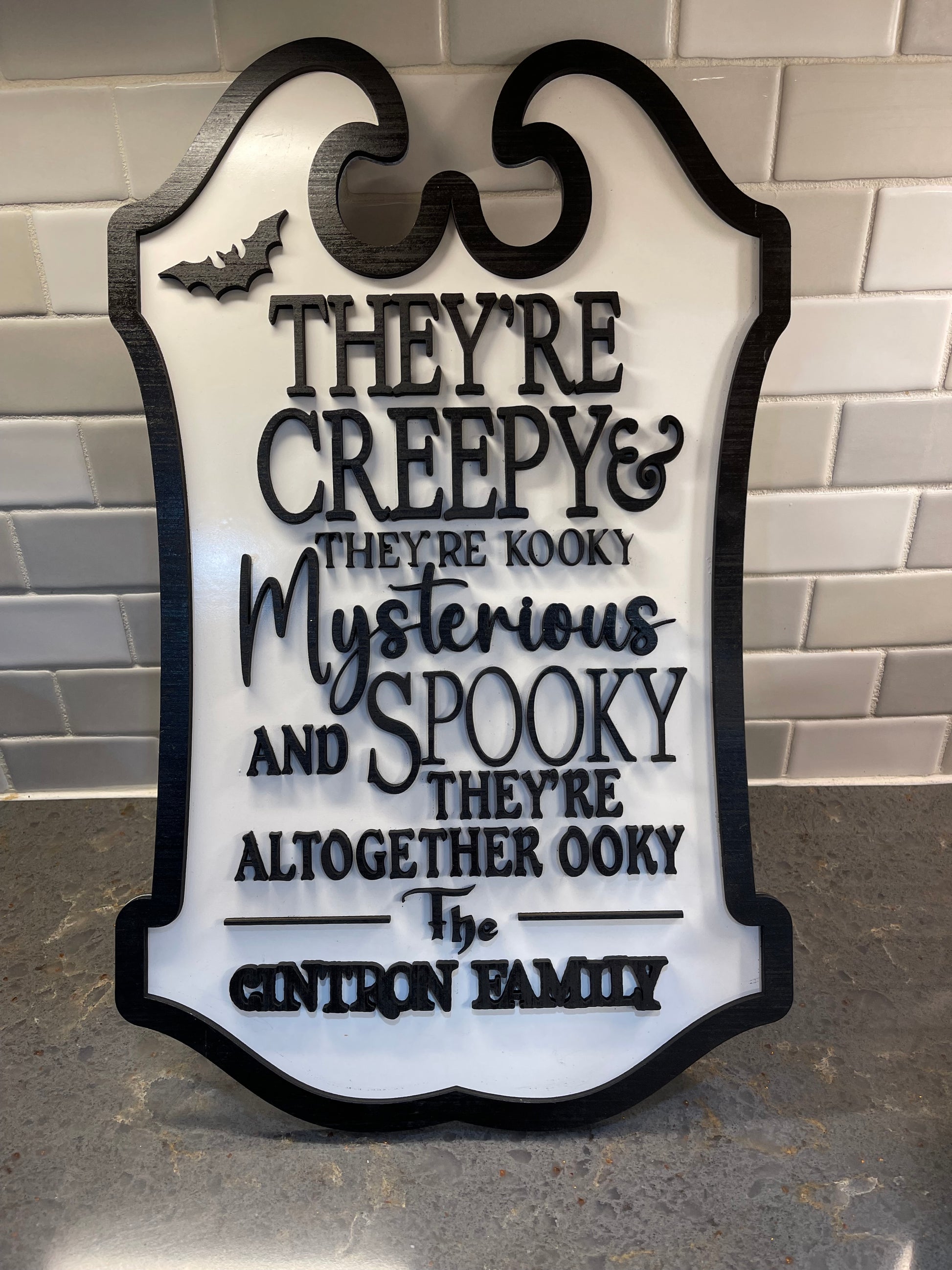 Personalized family sign with Adam’s Family Theme Song. 19 in tall by 11.9 in wide.