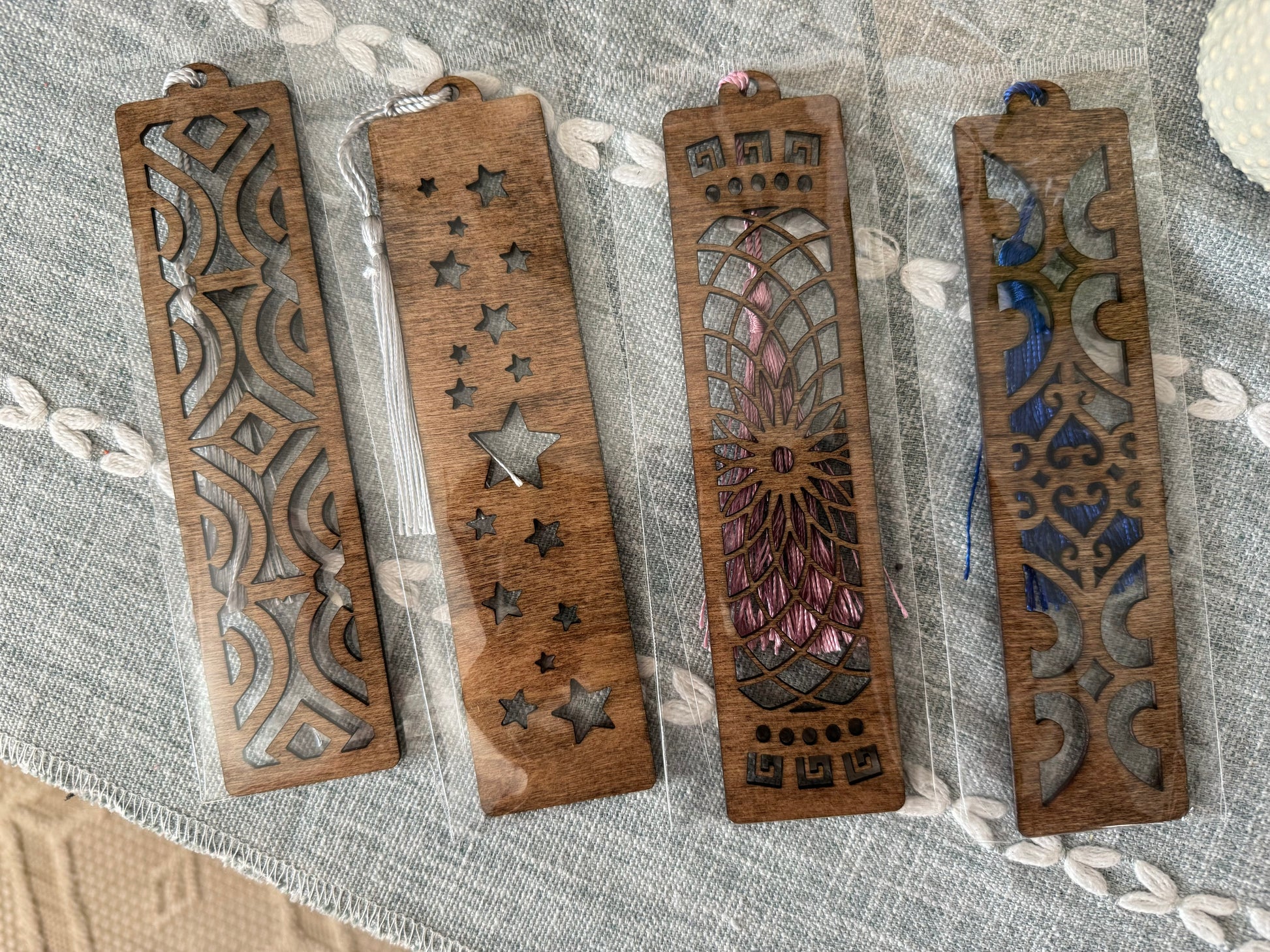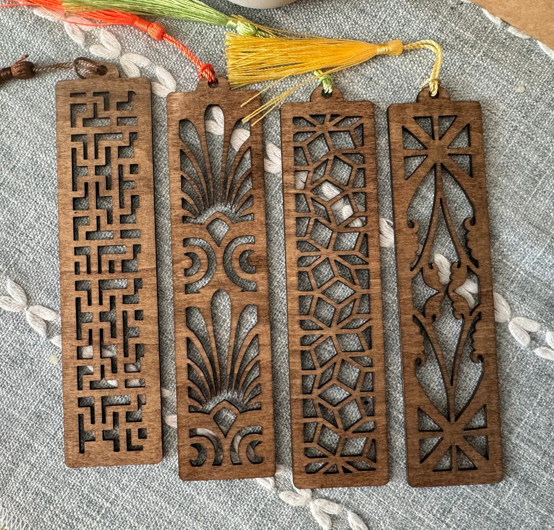 Set of 4 randomly chosen wooden Bookmarks. Feel free to add any preferences in the comment box and I’ll do my best to include it!